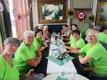 Das Jahresprogramm der TVB-Gymnastikdamen steht in diesem Jahr ganz im Zeichen des 50. Jubiläums der Gründung der Abteilung. Beim Fastnachtsumzug erinnerten die Damen als Rotkäppchen Sekt Flaschen verkleidet mit einem prachtvollen, farbenfrohen Kostüm an das Jubiläum. Auch beim 29. Volksradfahren im Mai machten alle Damen mit ihren Jubiläums-T-Shirts auf das 50. Bestehen der Abteilung aufmerksam. Im Rahmen des Sommerprogramms wurde es dann auch von den Aktiven gebührend gefeiert. Den feierlichen Rahmen bildete Agas Barlounge, die ganz im Zeichen der Nostalgie steht und einen besonderen Charme hat, der zum Gründungsjahr 1974 passt.
