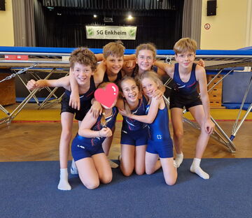 Mit tollen Leistungen ist unser Trampolinnachwuchs in die Jugendliga gestartet. Johann, Nico, Saskia, Vici, Lissi, Elias und Malea lieferten zum Auftakt tolle Übungen ab und konnten in der Tageswertung knapp hinter Gastgeber SG Enkheim aber noch vor dem TSV Pfungstadt Rang drei erturnen.