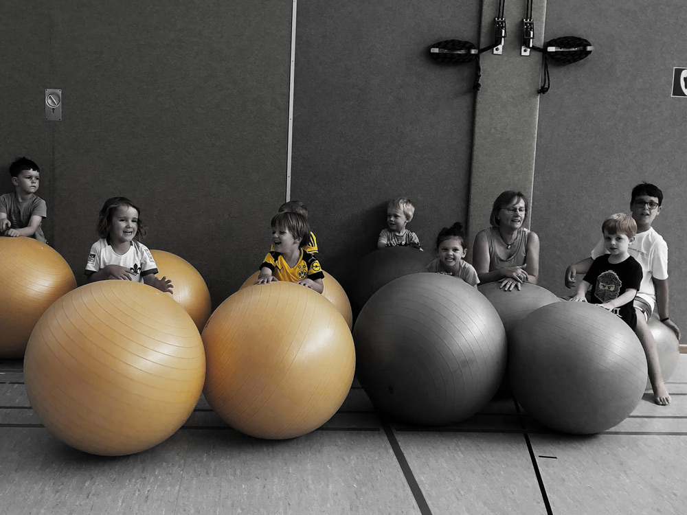 Die Kids sind zwischen dreieinhalb und viereinhalb Jahre alt und sie treffen sich jeden Donnerstag von 15 bis 16 Uhr in der Tornhall. Und was machen die Kurzen in dieser Stunde alles so? Es geht um das Erlernen einzelner motorischer Fertigkeiten, bei denen es sich nicht nur um den Ball dreht. Die Wahrnehmung des Kindes soll mit Hilfe von Spielen und vielen offenen Bewegungsangeboten angeregt werden. Die auf diese Weise erworbenen eigenen Erfahrungen mit bekannten bzw. unbekannten Gegenständen und mit sich selbst, stärken das Kind. Es können verschiedene Bewegungsformen ausprobiert werden, die auch das soziale verhalten innerhalb der Gruppe stärken. Im Vordergrund steht aber der Spaß und die Freude an der Bewegung.