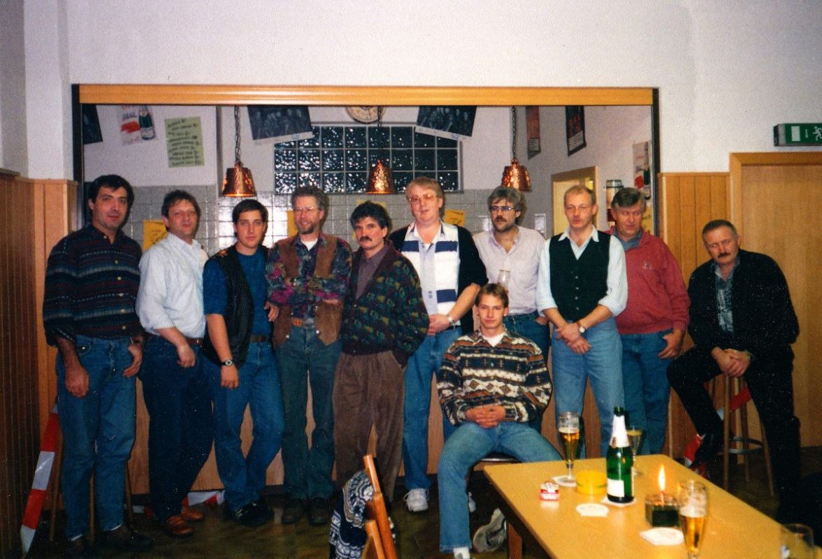 Es war an einem lauen Herbstabend im November 1995. Die letzte Schraube wurde angezogen und die neue Bar im Gymnastikraum war endlich fertig. Die Montagsmaler, die damals vornehmlich noch dienstags schafften, hatten wieder mal mit viel Engagement und Energie was tolles vollbracht. Ab sofort musste nicht mehr an Kerb und Fastnacht mit viel Mühe das Provisorium aufgebaut werden und auch für kleinere Familienfeiern konnte der Gymnastikraum nun besser genutzt werden.