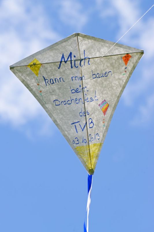 Der Drachenbau findet im Rahmen unseres Drachenfestes am 03. Oktober ab 11 Uhr auf dem Drachengelände „Hinter dem Birkenhof“ in einem Zelt mit fachkundiger Betreuung statt. Für den Drachenbau sind keine Vorkenntnisse notwendig; der Drachen wird aus Tyvek einer Fasertextilie in seiner Grundform vorgefertigt. Der Drachen ist 66 cm hoch und leicht zu händeln. Die Teilnehmer werden die Kanten des Drachens kleben, die Stäbe zuschneiden, die Waage für die Drachenleine anbringen und den Drachen noch bunt anmalen. Pro Drachen ist mit 30 – 40 Minuten Zeitaufwand zu rechnen, je nachdem wie aufwendig die Bemalung ist. Der Unkostenbeitrag pro Drachen liegt bei 5 Euro. In dem Betrag ist auch die Schnur zum Fliegen enthalten. Eine Voranmeldung ist nicht notwendig.
