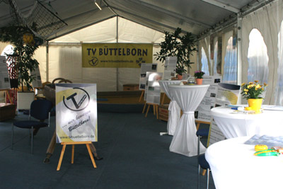 Die enorme Arbeit, die in den TV-Stand an der Gewerbeschau investiert wurde, hat sich gelohnt. „Das ist schon enorm, was Ihr hier auf die Beine gestellt habt“, war des Öfteren zu hören. Im dem großen Zelt konnten sich die Besucher umfangreich über die Arbeit im Turnverein informieren. Auf der Aktionsbühne gab es zudem kleine Vorführungen. Tischtennis und die verschiedene Fitnessgeräte konnten dort ebenfalls unter fachkundiger Anleitung ausprobiert werden. Großen Andrang gab es auch außerhalb des Zeltes, wo das Trampolin, die Dosenwurfmaschine und die Mohrenkopf-Wurfmaschine vor allem für die Kids ein wahrer Anziehungspunkt waren.