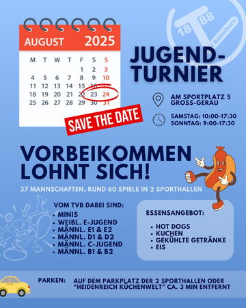 Nach dem erfolgreichen Jubiläumsauftakt der aktiven Männer- und Frauenmannschaften Anfang August, steht nun das nächste Highlight für den TV an: An diesem Wochenende sind die Jugendmannschaften im Fokus. In einem bislang einzigartigen Format treten über 30 Teams – von den Minis bis zur B-Jugend – in einem großen Zwei-Hallen-Turnier gegeneinander an.