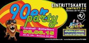 Pünktlich zum 90. Geburtstag der Tornhall findet am 6. Juni wieder eine 90er-Party statt. Der Vorverkauf läuft ab sofort - Karten gibt es hier im TVB-Fan-Shop sowie im Sportreff in der Mainzer Straße und in der TVB-Geschäftsstelle. Wer seine Karte im Vorverkauf bis zu, 1.6. erwirbt, hat die Chance, beim Gewinnspiel mitzumachen.