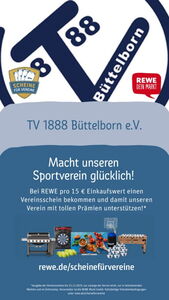Bei REWE gibt es jetzt eine tolle Aktion. Je 15 Euro Einkaufswert gibt es einen sogenannten Vereinsschein. Diesen könnt Ihr im Internet auf www.rewe.de/scheinefürvereine dem TV vermachen. Wenn es genügend Scheine gibt, können wir uns ganz tolle Prämien aussuchen.
