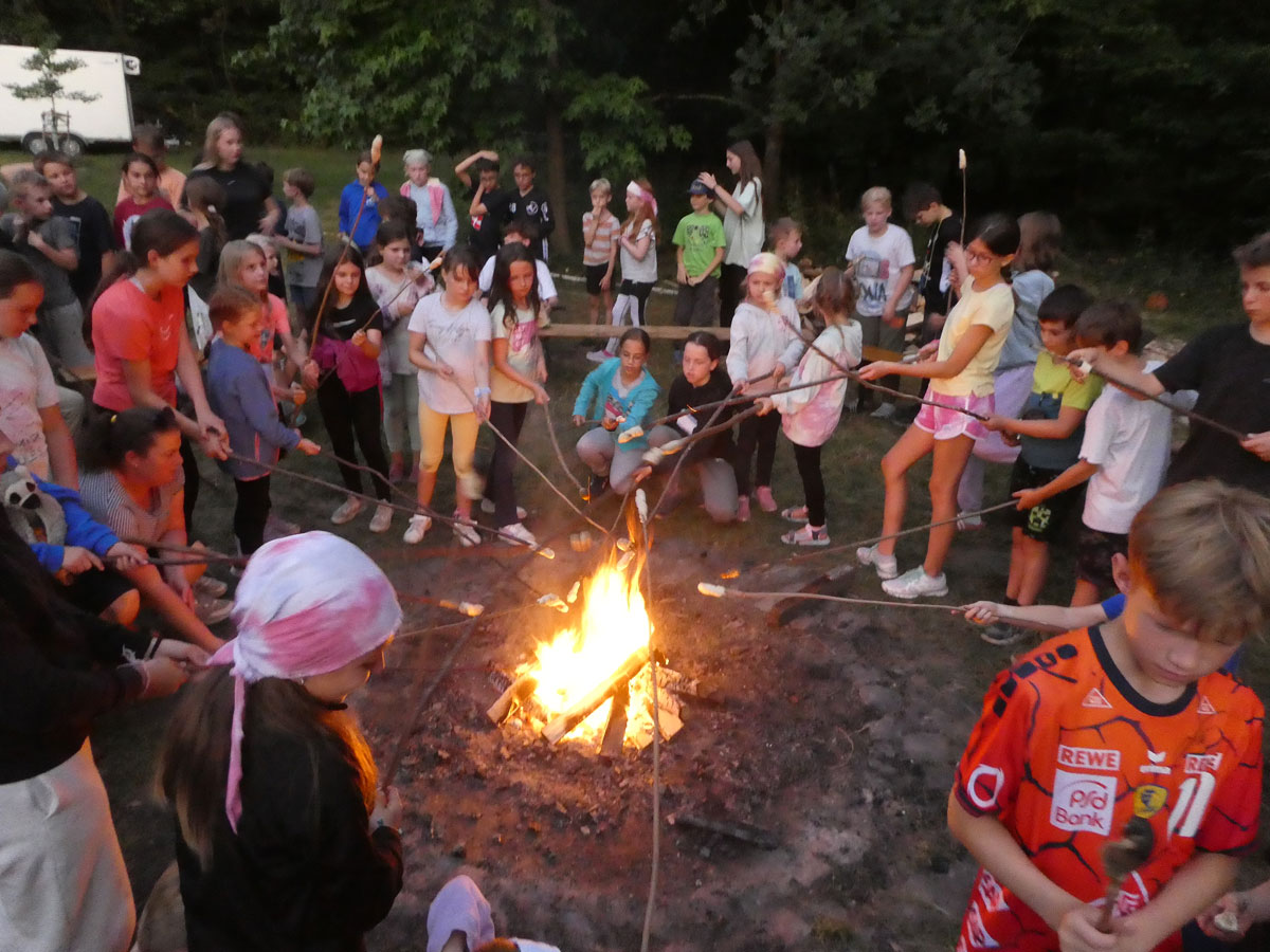 Nach der Gruppeneinteilung am Freitagabend begann das Wochenende mit einem 70-Frage-Spiel. Im Anschluss wurde noch eine kleine Geschichte erzählt, die zum Mitmachen animierte, danach gab es das erste spektakuläre Lagerfeuer. Das hier mit viel Engagement auch laut und fröhlich gesungen wurde, war nicht zuletzt der Verdienst unserer zwei Gitarristinnen Anne und Lisa. Dass die frischen Laugenbrezeln alle hungrigen Bäuche füllten, muss hier wohl nur am Rande erwähnt werden.