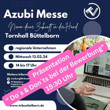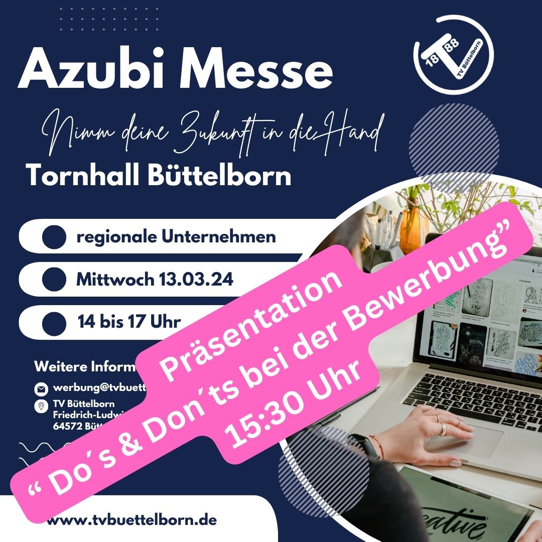 Nimm Deine Zukunft in die Hand - Unter diesem Motto geht der TV Büttelborn neue Wege und veranstaltet am Mittwoch den 13.03.24 eine Ausbildungsmesse in de Tornhall.