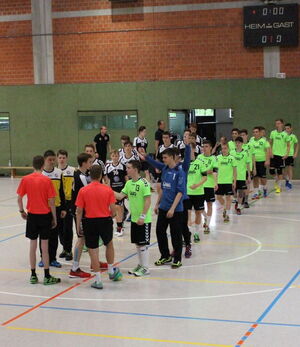 Beim letzten Spiel ging es für die Jungs der männlichen B-Jugend nochmal um alles oder nichts. Es war klar, dass nur ein Sieg zum Erreichen der Oberliga langen würde. Die Jungs gingen sichtlich motiviert in das Spiel gegen die JSG Melsungen/Körle/Guxhagen. Mit einer guten Abwehrleistung und einem überragenden Tim Poth im Tor gelang es den Jungs sich von einem 4:4 auf 8:4 abzusetzen. In die Pause ging es schließlich mit einem 8:6. Die Halbzeitansprache war deutlich, genau so weiter machen und auch die Wege gehen, die wehtun. Zurück auf dem Feld spielte man zunächst zwei Minuten in Unterzahl, die von JSG Melsungen/Körle/Guxhagen konsequent ausgenutzt wurde und das Spiel war beim 8:8 ausgeglichen. Danach konnte sich die JSG Büttelborn durch Tore von Jonas Jacob und Henrik Graichen auf 11:9 absetzen. Doch diese Führung konnte nicht weiter ausgebaut werden, JSG Melsungen/Körle/Guxhagenglich abermals aus (11:11). Es ging immer wieder hin und her, aber in Hintertreffen gerieten die Jungs nie. Allerdings war Ihnen bewusst, dass nur ein Sieg das Ziel endlich greifbar machen würde. Durch einen schönen Torabschluss gelang es Henrik Graichen die JSG wieder mit 17:16 in Führung zu bringen. Nun waren es noch 30 Sekunden, in denen die JSG Melsungen/Körle/Guxhagen den Ausgleich hätte werfen können. Durch eine gute Abwehrarbeit gelang es den Spielern der JSG Melsungen/Körle/Guxhagen nicht in eine gute Wurfposition zu kommen. 2 Sekunden vor Schluss bekam die JSG Melsungen/Körle/Guxhagen noch einen Freiwurf zugesprochen, diesen konnte Tim Poth jedoch entschärfen. Mit 17:16 gewann die JSG Büttelborn schließlich ein hartes, aber sehr faires und umkämpftes, Spiel.