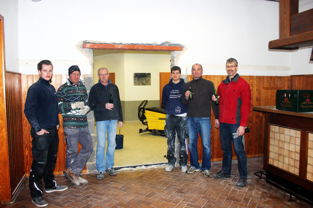 Beim erstellen des Durchbruchs erkannten die Schaffer, dass vor vielen Jahrzehnten wohl ein solches Vorhaben schon einmal vorgesehen war. Denn direkt neben dem neuen Duchgang war bereits ein Sturz eingebaut, gedacht für ein späteren Durchgang. „Früher war die Bar zur Jahnstraße hin aufgebaut, der Teil in Richtung zum damaligen Haupteingang war an Kerb und Fastnacht als Lagerraum abetrennt. Da kann ich mich noch dran erinnern“, so Werner Senßfelder. Damals hätte ein Druchbruch an dieser Stelle sicherlich Sinn gemacht – doch mit dem heutigen Standort der Bar hätte das nicht funktioniert.