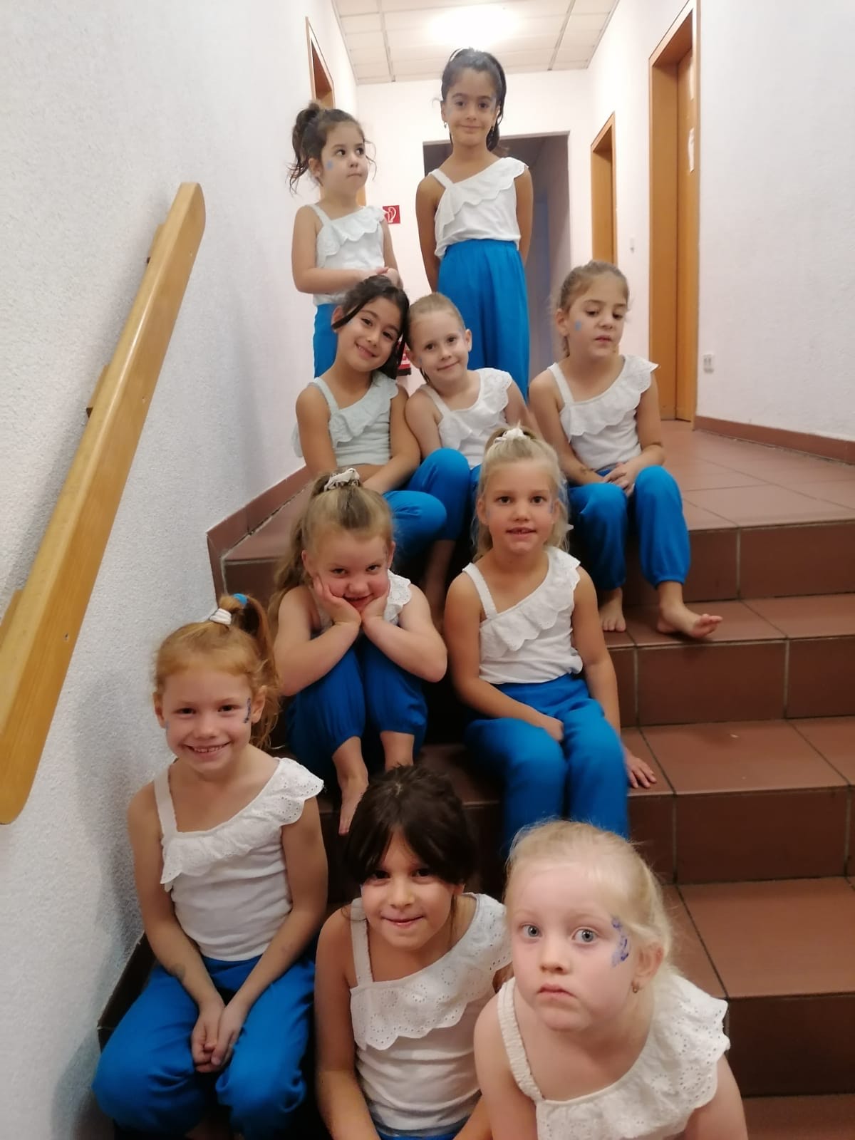 Gestern traten unsere zwei jüngsten Tanzgruppen beim Seniorennachmittag im Volkshaus auf. Dafür wurde sich vorher oben im Spiegelsaal getroffen, damit die Trainerinnen die Kinder noch extra schminken und frisieren konnten.