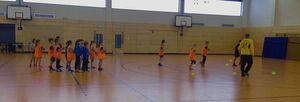 Im ersten Teil ging es theoretisch zu. Renè legte den Schwerpunkt auf die Trainingsinhalte für Mini’s, E-Jugend und D-Jugend. Das Training sollte entsprechend der Altersklasse Prozentmäßig den Inhalten Handballspielen, spezielle Vorrausetzungen und Vielseitigkeit angepasst werden. In der D-Jugend z. B. der Anteil der Trainingszeit im Bereich der Vielseitig geringer wie bei den Mini‘s. Nach einer kurzen Mittagspause ging es mit dem praktischen Teil weiter. Die JSG-Trainer und Renè wurden von den Mädels und Jungs unserer E-Jugend als Demomannschaft unterstützt. Alles vorher theoretische gelernte wurde jetzt umgesetzt.