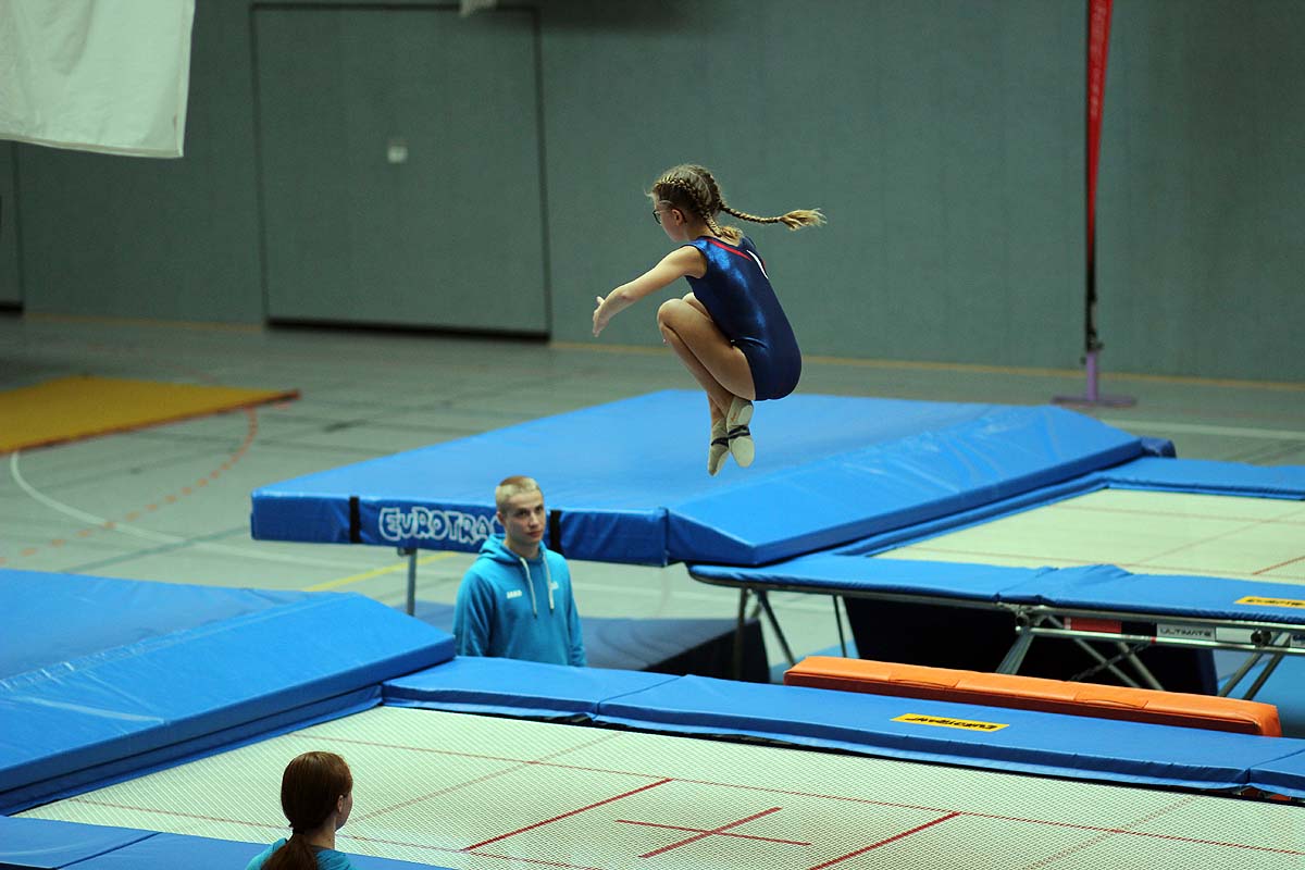 Unsere jüngsten Turnerinnen blieben ohne Podestplatz. In den zahlenmäßig stark besetzten Klassen bis 10 Jahre und bis 12 Jahre schaffte es Hiba Allouch immerhin in das Finale und belegte dort Rang 8. Bei den fünf „Minis“, die vom TVB dabei waren, konnte sich Emma Herzberger mit Platz zehn am weitesten vorne platzieren. „Wir sind bei den Kurzen auf einem sehr guten Weg, da bildet sich ein tolles Team, wo sich die ein oder andere in Zukunft auch ganz vorne auf dem Treppchen wiederfinden wird. Die Trainer machen da einen richtig guten Job“, freut sich Büttelborns Trampolin-Chef Mirko Bott.