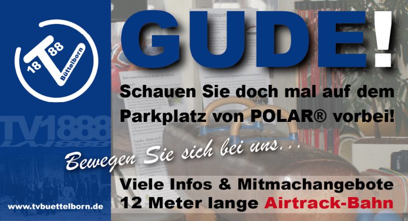 Am 23. und 24. April findet die Büttelborner Gewerbeschau statt. Bei der Leistungsausstellung ist auch TV Büttelborn vertreten. Schauen Sie doch einfach mal an unserem Stand vorbei. Auf rund 100m² Fläche können Sie ihre sportlichen Geschicke z.B. auf einer 12m lange Airtrackbahn, einer Tischtennis-Wurfmaschine und einer Handball-Geschwindigkeits-Messmaschine austesten. Außerdem bieten wir in Vorausblick auf das Drachenfest einen Drachenbau-Workshop für Kinder an und vielen mehr. Sie finden uns auf dem großen Parkplatz von POLAR-Deutschland.