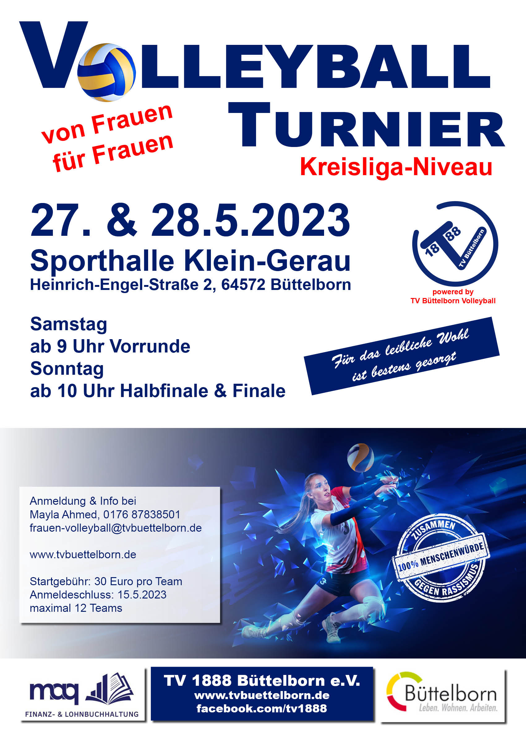 Anmeldungen und Infos zum Turnier sowie für das Training gibt es bei Mayla Ahmed, frauen-volleyball@tvbuettelborn.de