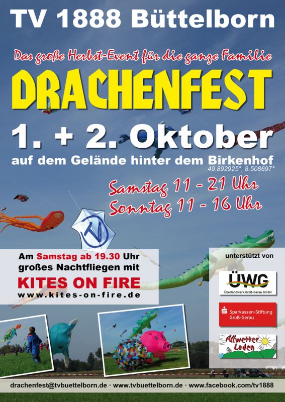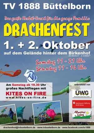 Wer erinnert sich noch? Im Oktober 2013 fand das große Drachenfest hinter dem Birkenhof statt. Über 1.500 Besucher zog dieses Spektakel an. In diesem Jahr wird es am 1. & 2. Oktober eine Neuauflage geben.