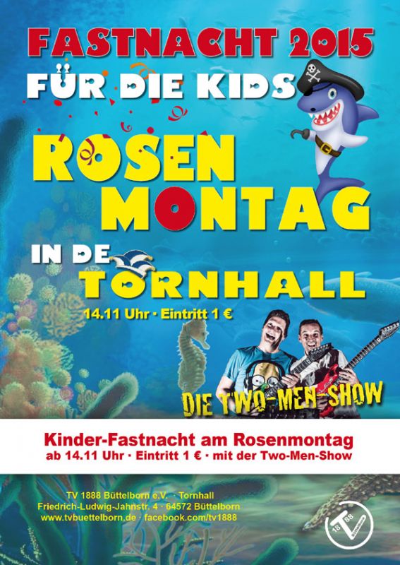 Am Rosenmontag (16.) findet die Kinderfaschings-Party statt - natürlich unter dem gleichen Motto, wie am Samstag bei den "Großen". Beginn ist um 14.11 Uhr und der Eintritt beträgt einen närrischen Euro. Und was ganz toll ist: Die DJs vom Samstag rocken auch den Rosenmontag in der Tornhall. Da geht was!