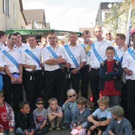 Nachmittags stellt sich vor der Kerwewirtschaft der Zug auf. Früher hatte er etwa folgendes Aussehen: