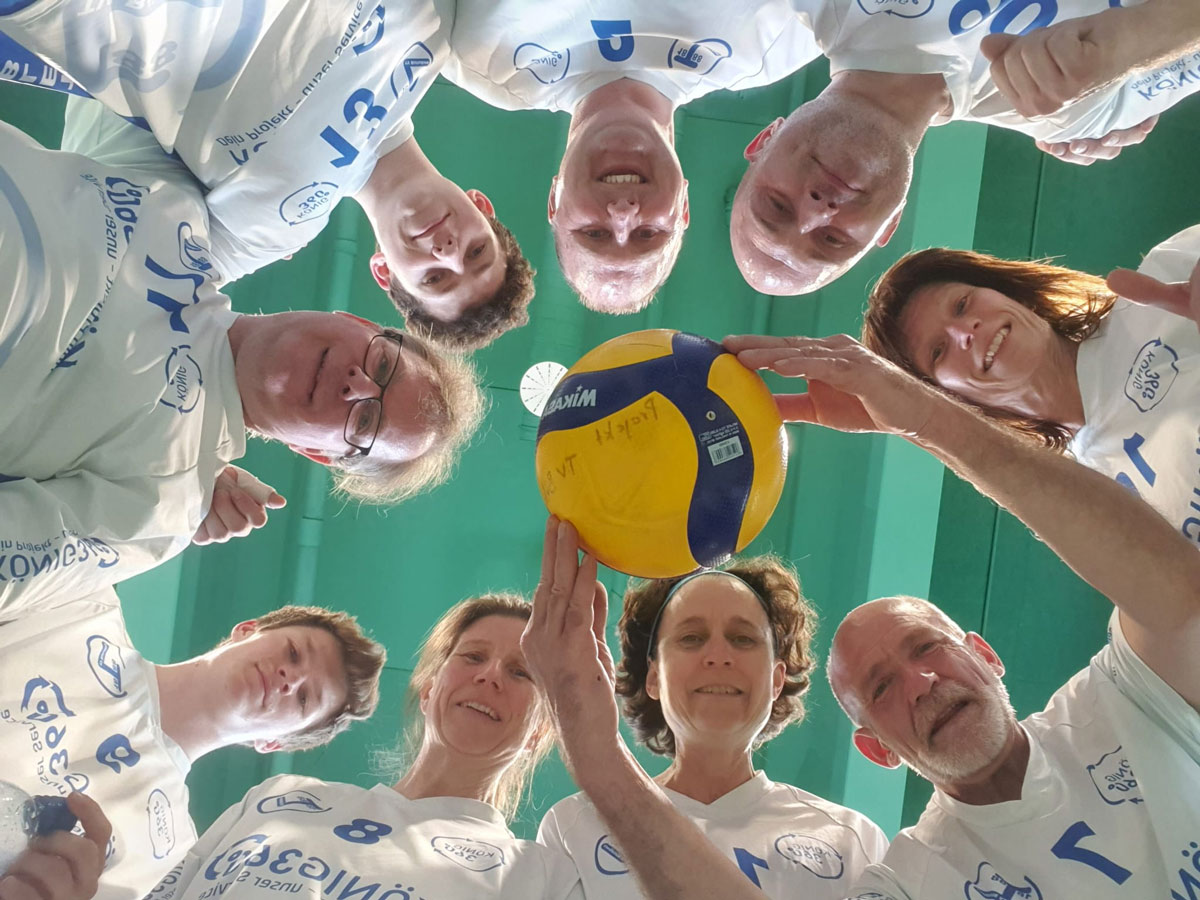 Unsere Freizeitsportler waren beim Volleyballturnier am Start und haben am Ende mit Rang acht genau die Hälfte der 16 Mannschaften hinter sich gelassen. Die Vorrunde lief mit zwei Siegen richtig gut. „Danach kamen Mannschaften, wo wir wussten, dass wir kämpfen mussten und eher wenig Chancen hatten – aber es hat mega Spaß gemacht“, so Robert Voos, der sich auch freute, dass viele aus dem TVB-Team zum Anfeuern in die Halle gekommen sind.