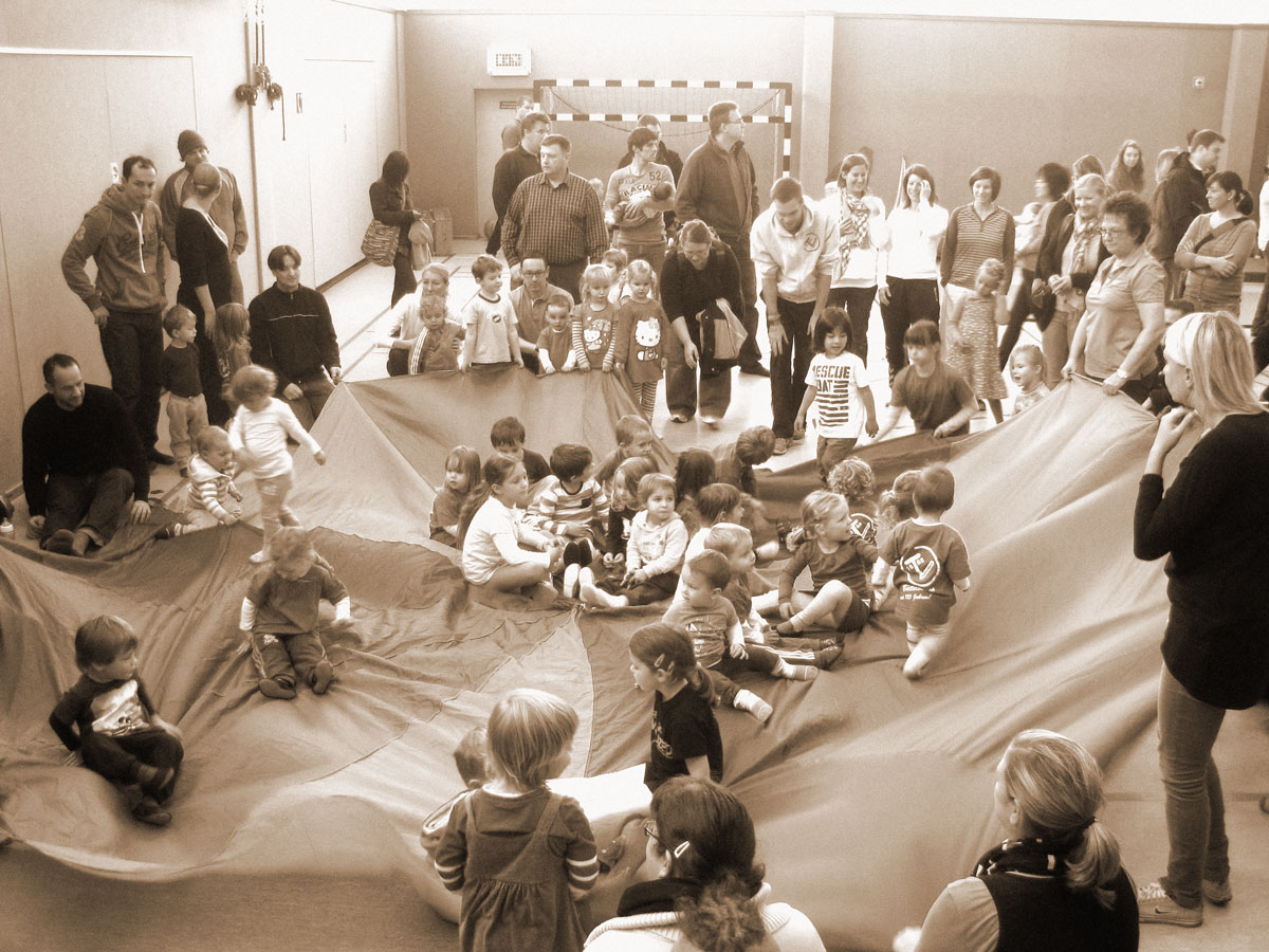 Wer kennt es nicht? Atte-Katte-Nuwa war das Highlight am Ende jeder Turnstunde sellemols. Heute gehen alle Leut' nach Haus' oder die Regenwürmer husten irgendwo im Boden... das obligatorische Lied zum Schluss der Turnstunde. Das Eltern-Kind-Turnen – früher hieß es nicht ganz dem heutigen Lebensstil entsprechend "Mutter & Kind-Turnen" – ist DIE Grundlage in unserem Verein. Die Basis für alles, was danach kommt.