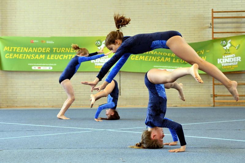 In drei Disziplinen müssen die beiden Teams ihr Können zeigen, eine messbare Disziplin und zwei nicht-messbare Disziplinen. Der Wettkampf startet für beide Gruppen mit einer klassischen Pendelstaffel, die messbare Disziplin. Jeder rennt so schnell er kann und übergibt das Staffelholz an die Nächste, die Zeit gibt dann einen vorgegebenen Punktwert. Anschließend geht es in die Sporthalle. Dort präsentieren die beiden Mannschaften Ihre Bodenkür und einen Tanz. Verschiedene Elemente bestimmen hier den Schwierigkeitsgrad, aber auch die Ausführung und die Gestaltung werden bewertet. Da es hier im eigenen ermessen der Kampfrichter liegt, sind das die sogenannten nicht messbaren Disziplinen. Ina Hamm und Julia Führer betreuen seit einigen Wochen das Team Limited Edition und hoffen auf eine ähnlich gute Platzierung wie im vergangenen Jahr beim Landeskinderturnfest in Gießen.