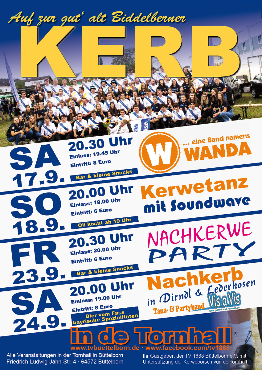 Seit 1998 ist die Nachkerweparty ein fester Bestandteil der Biddelberner Kerb. Am Freitag vor der eigentlichen Nachkerb feiert vor allem die Jugend in der Tornhall.