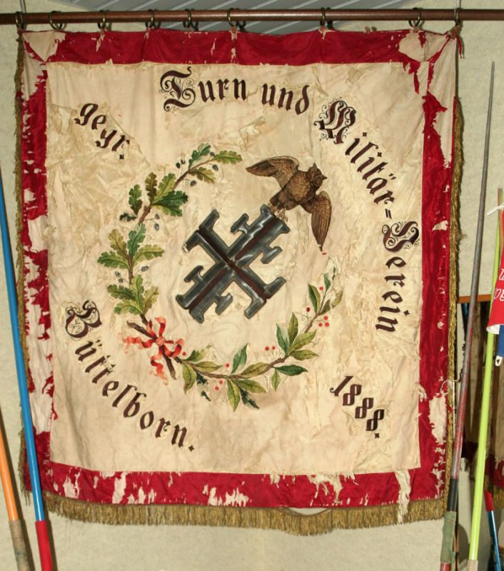 Unsere zwischenzeitlich verschollene Vereinsfahne aus dem Jahr 1892 - damals hieß der Verein noch Turn- und Militärverein - soll für die nachfolgenden Generationen erhalten bleiben. Mit einer kleinen Spende können Sie uns bei diesem Vorhaben unterstützen. Ob die Fahne in dem aktuellen Zustand konserviert oder komplett wieder hergestellt wird, ist noch nicht ganz sicher. Wir freuen uns über eine Spende auf das Konto 308 650 · KSK Groß-Gerau · BLZ 508 525 53 · Vermerk: “Rettung Vereinsfahne”. Eine Spendenquittung stellen wir Ihnen gerne aus.