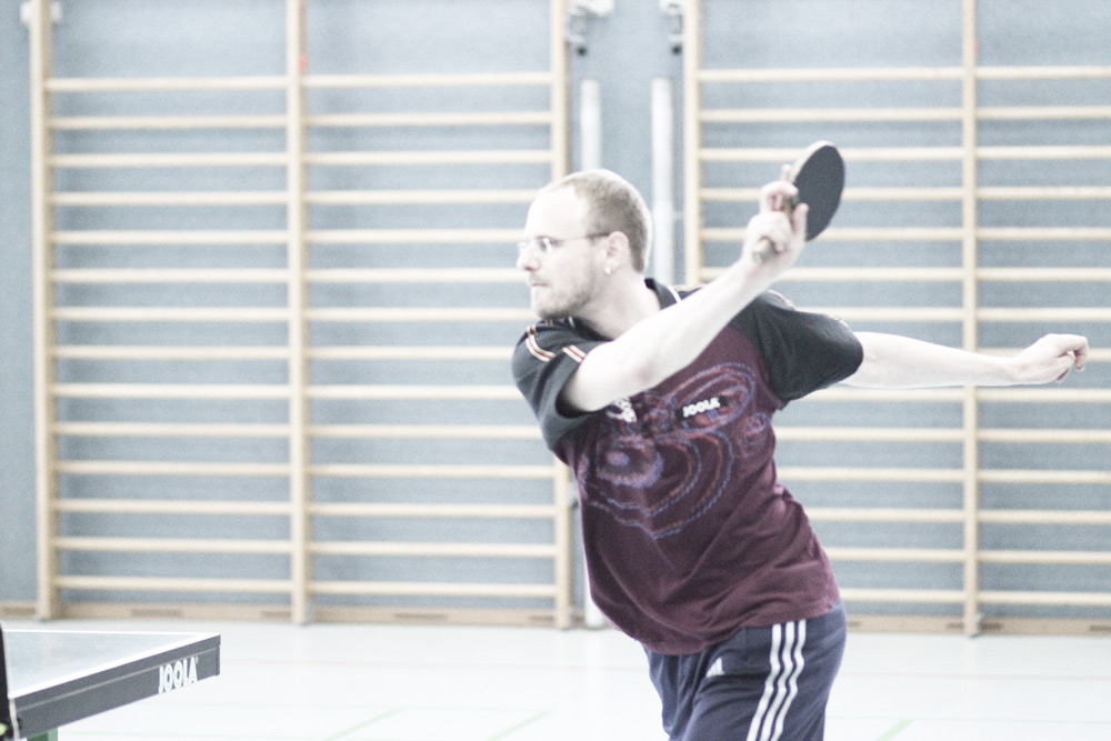 Mit dem Zuspruch war die Tischtennis-Abteilung um Abteilungsleiter Dominik Graf durchaus zufrieden. Zwar wurde die letztjährige Teilnehmerzahl nicht ganz erreicht, letztlich fanden sich aber immerhin 10 Damen und 8 Herren zum abendlichen Medaillen-Wettstreit in de Tornhall ein. Erstmals waren damit die Damen beim Kampf mit dem 40 Millimeter kleinen Ball in der Überzahl. Nach Auslosung der Anfangspaarungen wurden die Damen- und die Herrenkonkurrenz im Doppel-KO-Modus ausgespielt; jeder Teilnehmer hatte somit mindestens zwei Spiele zu absolvieren. Nach teilweise spannenden Spielen und sehenswerten Ballwechseln konnte sich im Finale der Herren Thomas Eichler gegen Markus Jilg durchsetzen. In der Frauenkonkurrenz gewann Doris Schilling vor Christine Rank