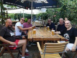 Weiter ging es über die Minigolfanlage Weiterstadt zur Nickelsmühle zwischen Schneppenhausen und Gräfenhausen. Bei besten Sommerlichen Temperaturen saß man im gut gefüllten Biergarten bei kühlen Getränken und leckeren Speisen zusammen und redete auch schon mal über das erste sportliche Highlight der Saison.