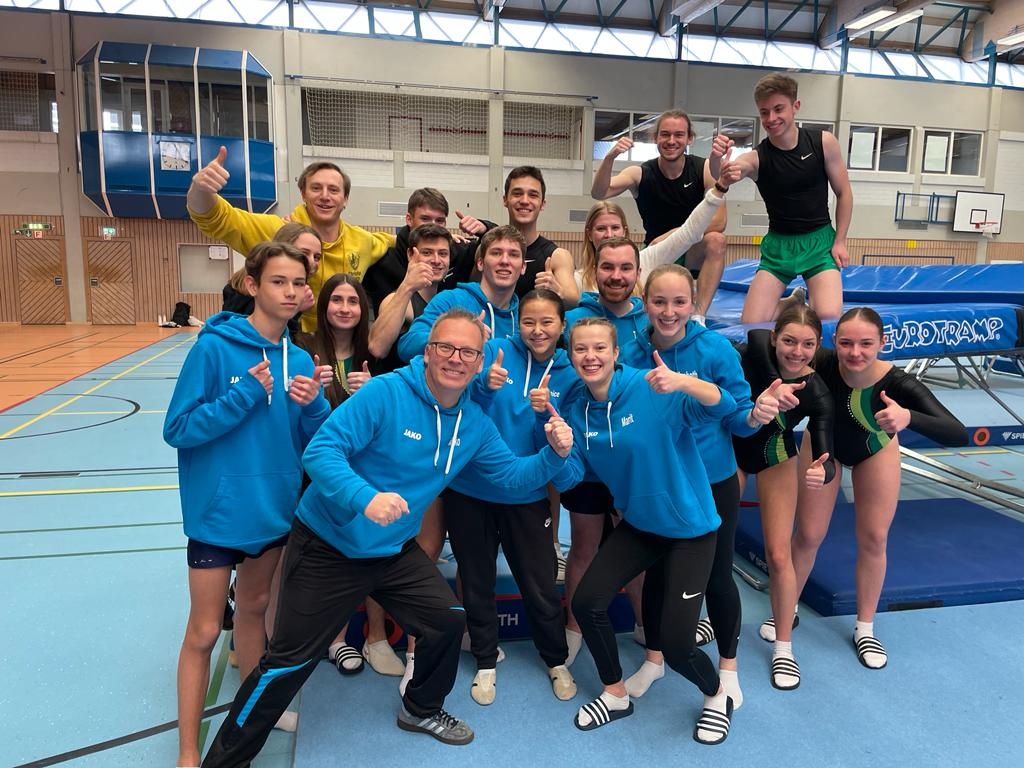 Doch bis zum Ende sollte es spannend bleiben. Nach der 1. Kür war der Vorsprung gegenüber dem TVD auf 2,0 Punkte angewachsen, Nieder-Beerbach lag auch nur knapp fünf Punkte zurück. Doch nach Tim Gernandts letzter Kür, gespickt mit vier Doppelsalti, war klar, dass der TVB einen Doppelsieg einfahren wird.