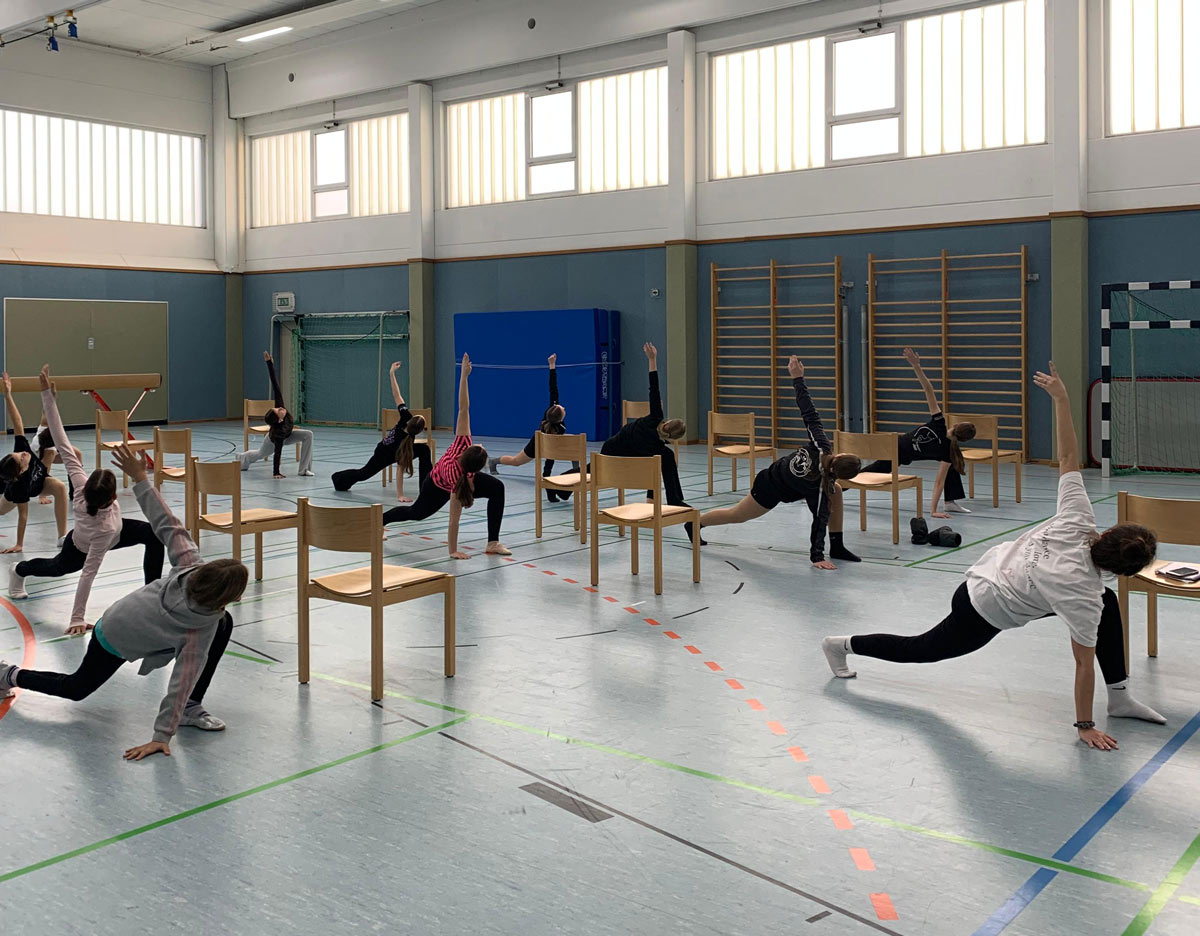 Am letzten Oktober-Wochenende gab es beim TV Büttelborn einen Ballett-Workshop mit Dozentin Annika May vom Tanzstudio A aus Darmstadt statt. Insgesamt 25 Kinder und Jugendliche haben teilgenommen, getanzt und geschwitzt. Mit improvisierten Ballettstangen aus Schwebebalken und Stühlen sowie unseren Spiegeln starteten wir in den Mittag.
