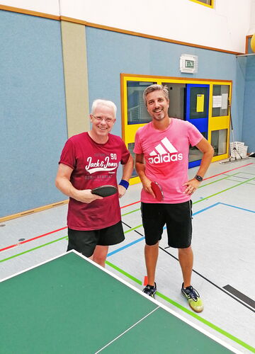 Ende September beginnt die neue TT-Saison. Die Trainingsbeteiligung wird deutlich größer, und der ein oder andere Spieler von befreundeten Vereinen kommt auch mal vorbei. Waren es letzte Woche 4 Spieler von Blau-Gelb-Groß-Gerau, so hatten wir diese Woche prominenten Besuch eines ehemaligen TV´lers. Der ein oder andere wird sich noch daran erinnern. Es war im letzten Jahrtausend, Freitagabend 20 Uhr Tischtennis in der Turnhalle. Super Stimmung, viele Fans – Weck, Worscht und Bier vom Fass. Die Erste Mannschaft spielte Verbandsliga und wurde von Ulf Kepper angeführt. Über 20 Jahre später, Ulf ist etwas Älter und Weißer geworden, spielt aber immer noch Verbandsliga in Königstädten, mittlerweile zusammen mit seinem älteren Sohn Florian. Für alle Spieler bestand die Möglichkeit sich mit Ulf und Stephan Zulauf, ein Mannschaftskamerad aus Königstädten, an der Platte zu messen. Natürlich wurde auch sehr viel über die guten alten Zeiten geredet und das ein oder andere Erfrischungsgetränk durfte nicht fehlen. Wir hoffen in Zukunft die beiden öfters in unserer Halle als Sparringspartner Begrüßen zu dürfen.