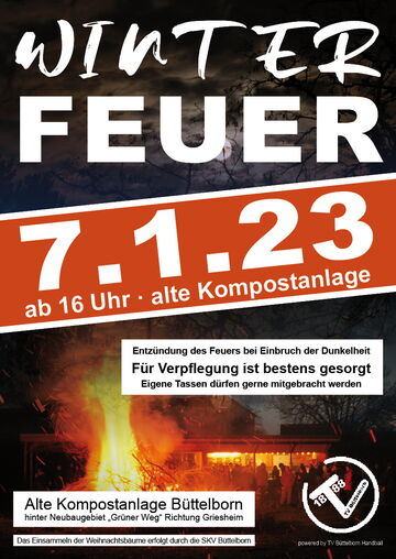 Während das Winterfeuer in diesem Jahr erstmals alleine vom TVB organisiert wird, übernimmt die SKV Büttelborn wie seit vielen Jahren schon das Einsammeln der Weihnachtsbäume. Die Bäume werden am Morgen vor dem Winterfeuer abgeholt.
