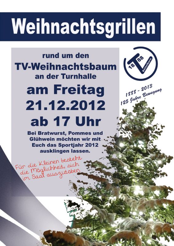 Jahresabschluss an der Turnhalle mit Glühwein, Würstchen und Pommes für die Kids