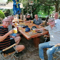 Tischtennisler treffen sich mit Zwiwwelschnitzel in Gerdas Biergarten